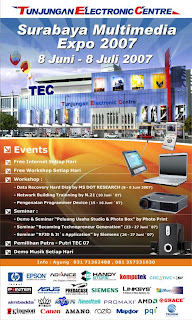 Sebagai Pembicara di Acara Surabaya Multimedia Expo di Tunjungan Electronic Center (TEC) Surabaya , tanggal 8-9 Juni 2007 dengan topik Seminar Data Recovery Harddisk, 8 Juni 2007 & Workshop Perbaikan Bad Sector Harddisk , 9 Juni 2007.
